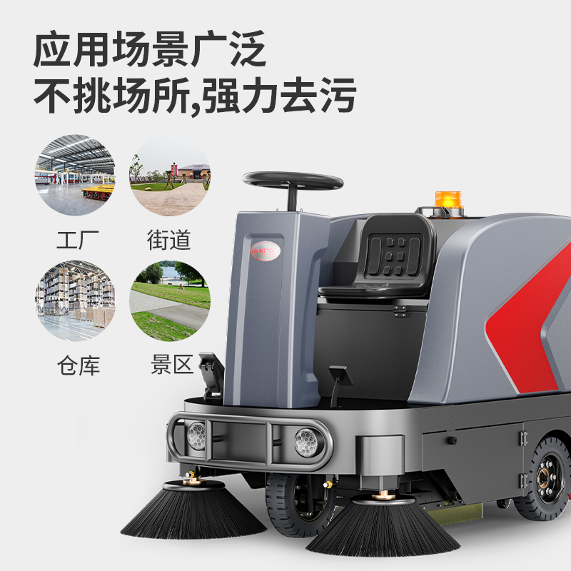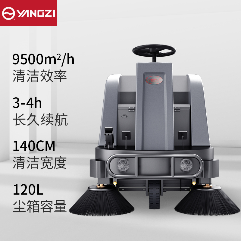揚子駕駛式商用/工業(yè)掃地機,1小時清掃9500㎡,爬坡問題輕松解決,大容量雙箱設計,強力雙邊刷+主刷輕松清掃深度垃圾。