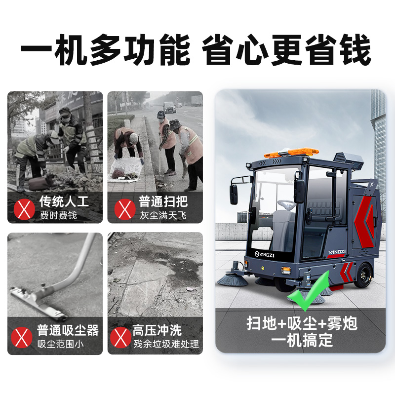 霧炮噴霧雙功能,一灑一噴不揚塵,液壓雙碟剎制動爬坡不溜車,2000W驅動輕松越過減速帶。